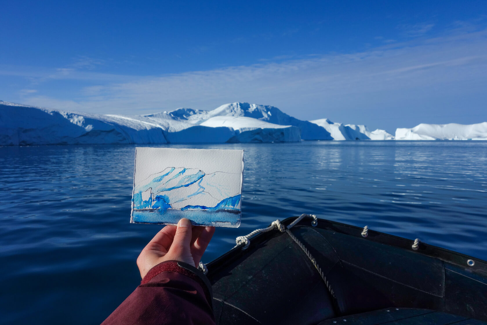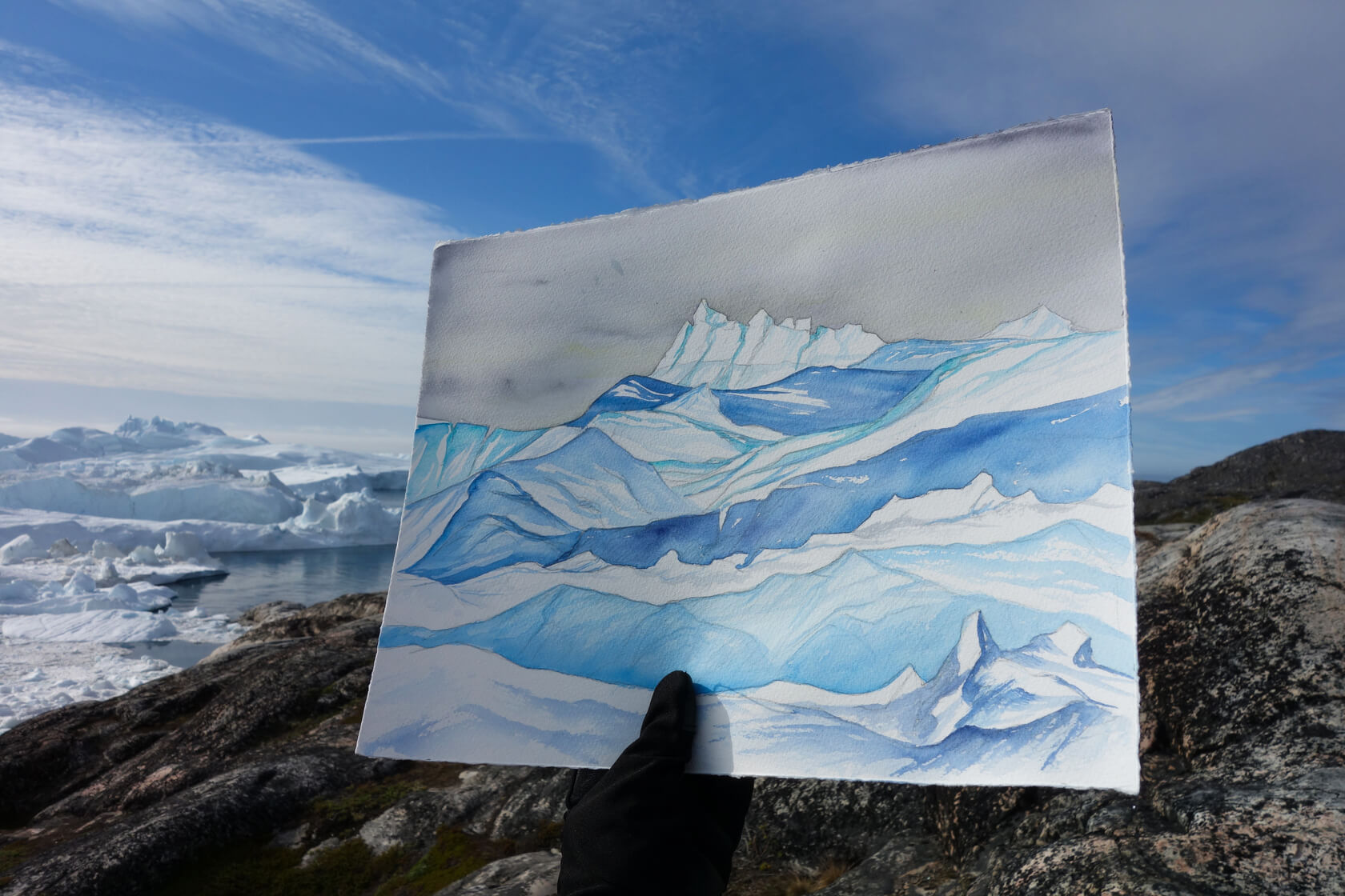 An echoing boom distracted me from the painting in my hands as I looked up at the sea of ice in front of me. An orchestra of pops, squeaks, and groans arose from the massive blocks of ice and gave the Ilulissat icefjord a larger-than-life presence.