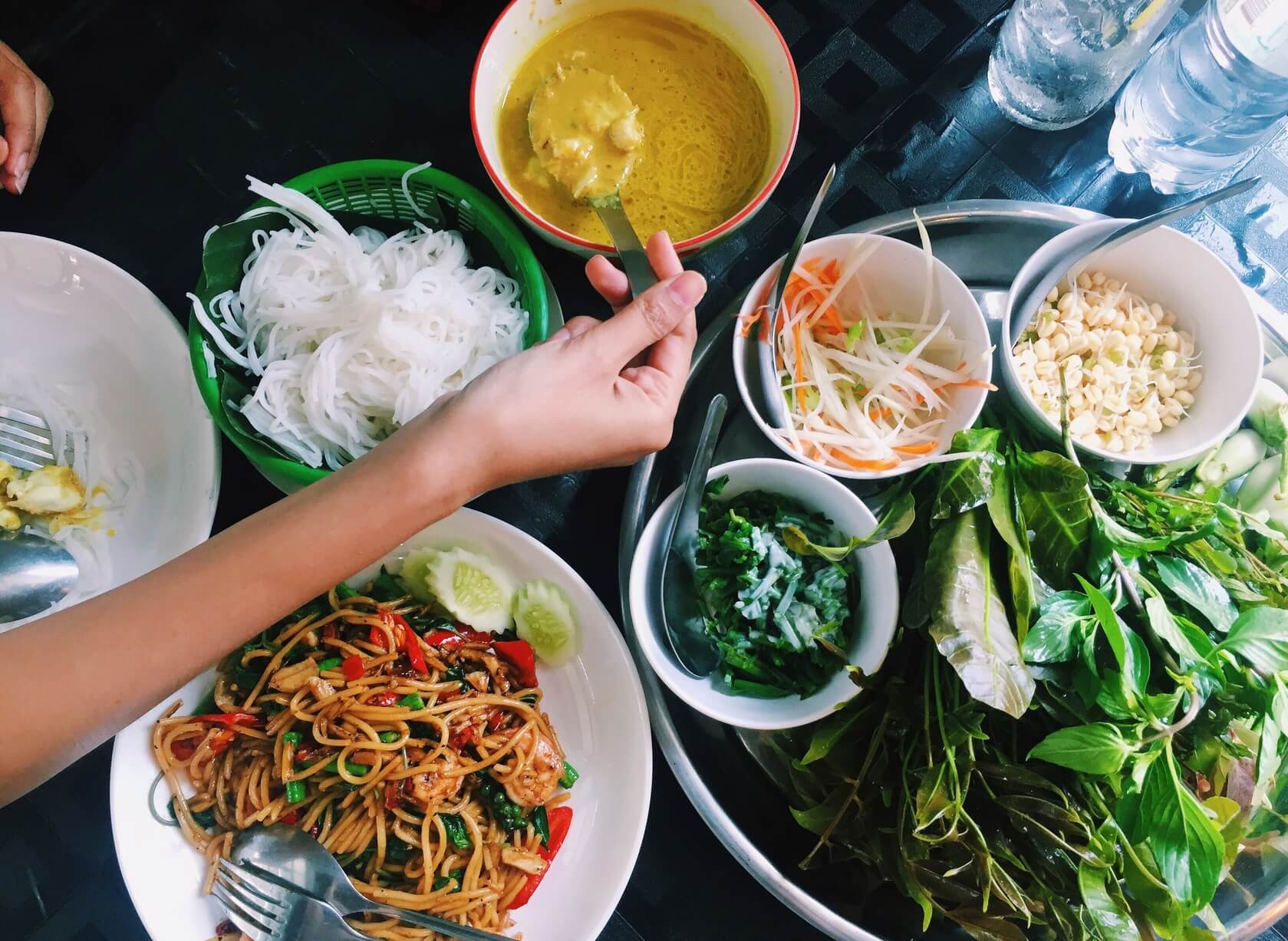 From aromatic soups to hearty noodle dishes, traditional Thai cuisine is bursting with flavor, texture, and freshness. There are so many dishes you have to try, starting, of course, with pad thai — the well-known fried noodle dish usually made with chicken or shrimp (or in vegetarian form). Another ubiquitous dish (served by street vendors and restaurants alike) is guay teow, or noodle soup. It comes in many versions — with chicken, pork or beef; rice, egg noodle, or wontons. But one of the main draws are the toppings, like dried chili peppers, lime juice, and fish sauce — all combining for a dynamic flavor mix.